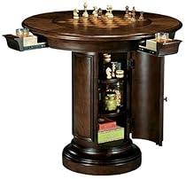 Howard Miller 699-010 select hardwoods and veneers with light distressing and a durable clear coat for wear protection Center of top is reversible/removable, featuring rare olive ash burl veneers on the dining surface side and a chessboard playing surface made from Walnut and Maple veneers on the other Accommodates four people Features four full-extension drawers with removable sandstone drink coasters Adjustable floor levelers keep the table level on uneven and carpeted surfaces ...