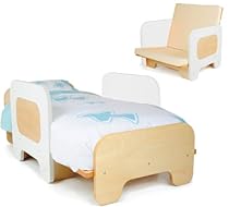 PKFFBWHT P'Kolino Review: I recently bought this bed for my 2 1/2 yr old son who figured out how to climb out of his crib. It took my husband and I less than an hour to put together. If you've ever put together an Ikea bookcase or dresser, this is along the same lines. Takes some concentration, but not difficult at all. My son loves it and it looks very cute in his room. My only complaint is that it is sold as easy to convert to a chair and back to a ... Read more »